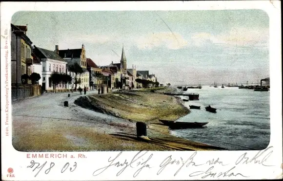 Ak Emmerich am Niederrhein, Flusspartie mit Teilansicht der Stadt