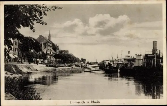 Ak Emmerich am Niederrhein, Hafenpartie, Teilansicht der Ortschaft
