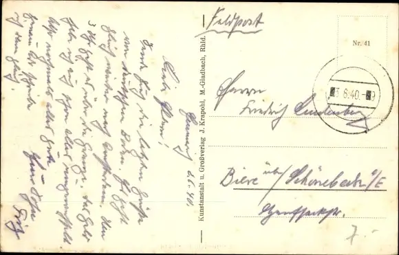 Zustand, siehe Scan, gelaufen, 1940 - ca 14 cm X 9 cm