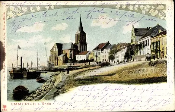 Ak Emmerich am Niederrhein, St. Martini Kirche, Anlegestelle, Dampfer