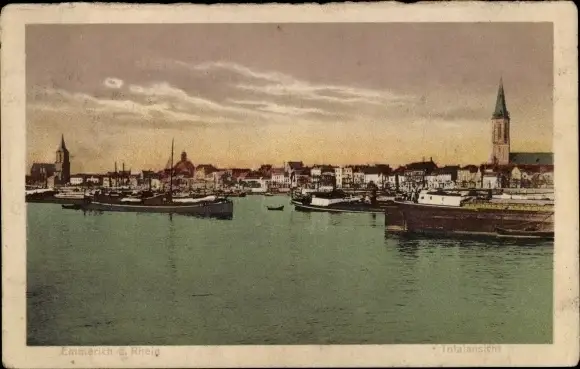 Ak Emmerich am Niederrhein, Totalansicht, Boote
