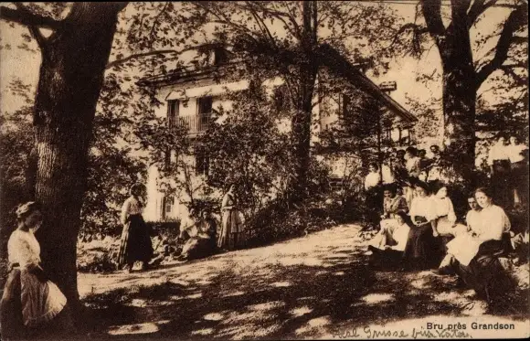 Ak Ems Bru Grandson Kanton Waadt, Frauen vor einer Villa