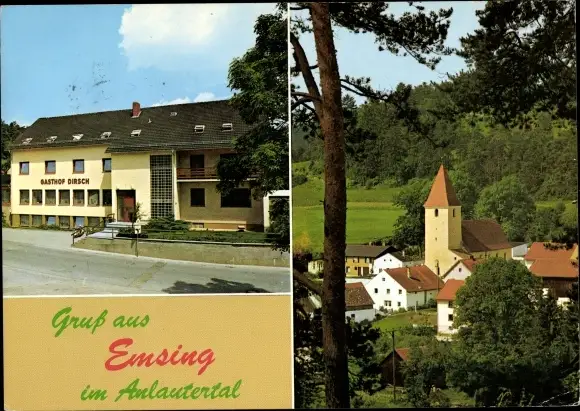 Ak Emsing Titting in Bayern, Gasthof Dirsch, Teilansicht vom Ort, Kirche