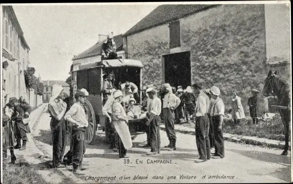 Ak En Campagne,Chargement d'un blesse dans une voiture d'ambulance, I WK