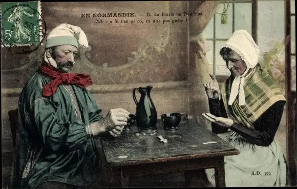Ak En Normandie, La Partie de Dominos, Paar in Tracht