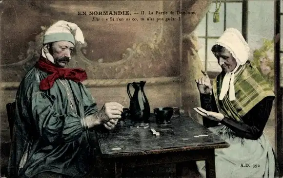 Ak En Normandie, La Partie de Dominos, Paar in Tracht