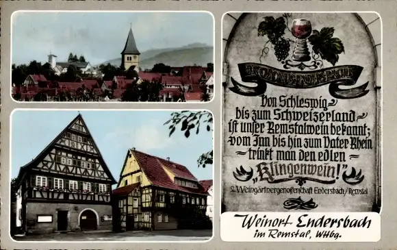 Ak Endersbach Weinstadt in Württemberg, Teilansicht, Fachwerkhäuser, Gedicht