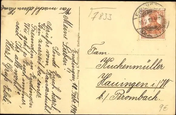 Zustand, siehe Scan, gelaufen, 1918 - ca 14 cm X 9 cm