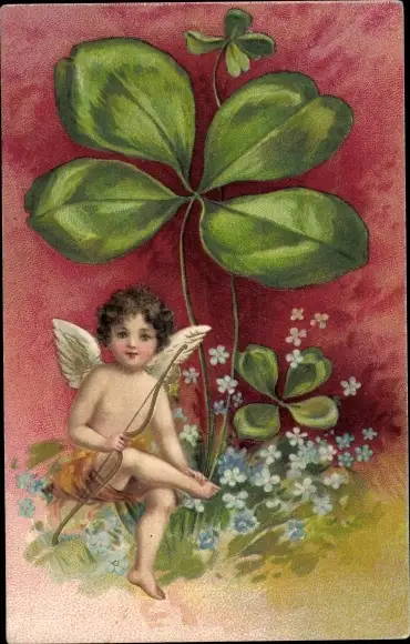 Ak Engel, Kleeblätter, Vergissmeinnicht, Amor