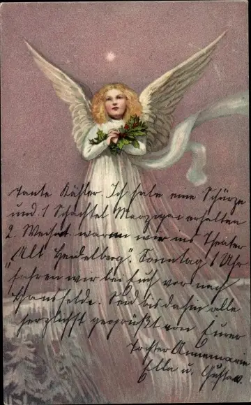 Ak Engel, Stechpalme, Tannenbäume