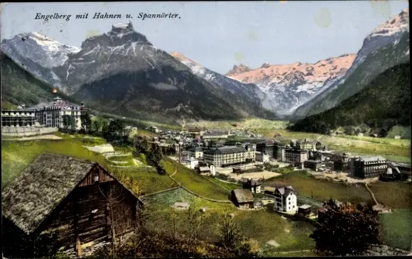 Ak Engelberg Kanton Obwalden Schweiz, Ansicht mit Hahnen und Spannörter