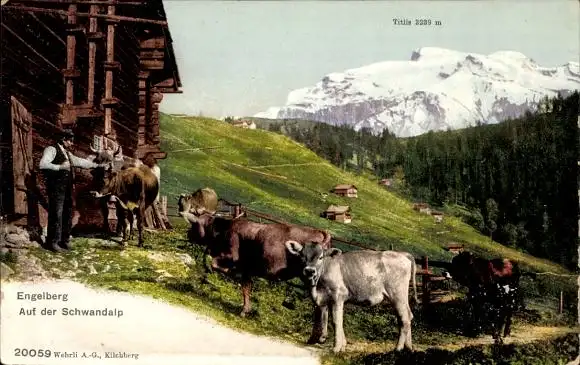 Ak Engelberg Kanton Obwalden Schweiz, Auf der Schwandalp, Kühe, Bauer