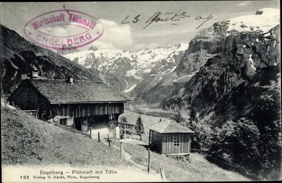 Ak Engelberg Kanton Obwalden Schweiz, Flühmatt mit Titlis, Gebirgspanorama