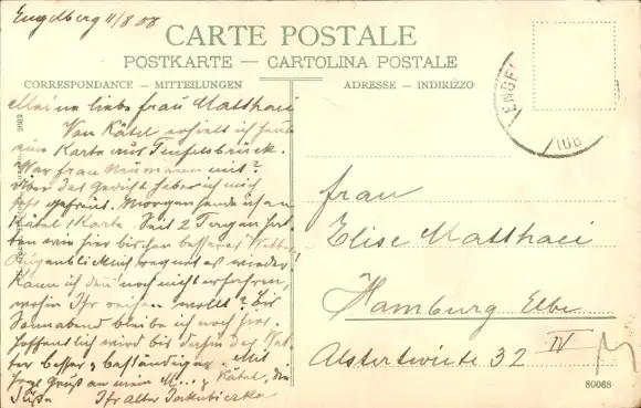Zustand, siehe Scan, gelaufen, 1908 - ca 14 cm X 9 cm