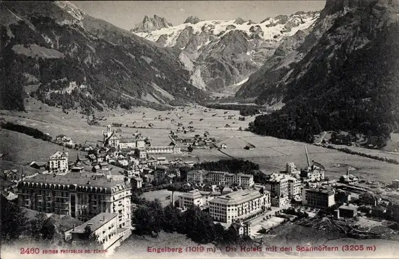 Ak Engelberg Kanton Obwalden Schweiz, Hotels mit den Spannörtern