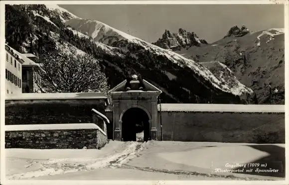 Ak Engelberg Kanton Obwalden Schweiz, Klosterportal mit Spannörter