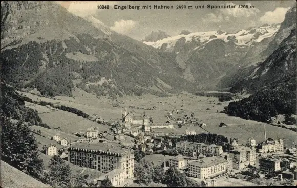 Ak Engelberg Kanton Obwalden Schweiz, Ort mit Hahnen und Spannörter