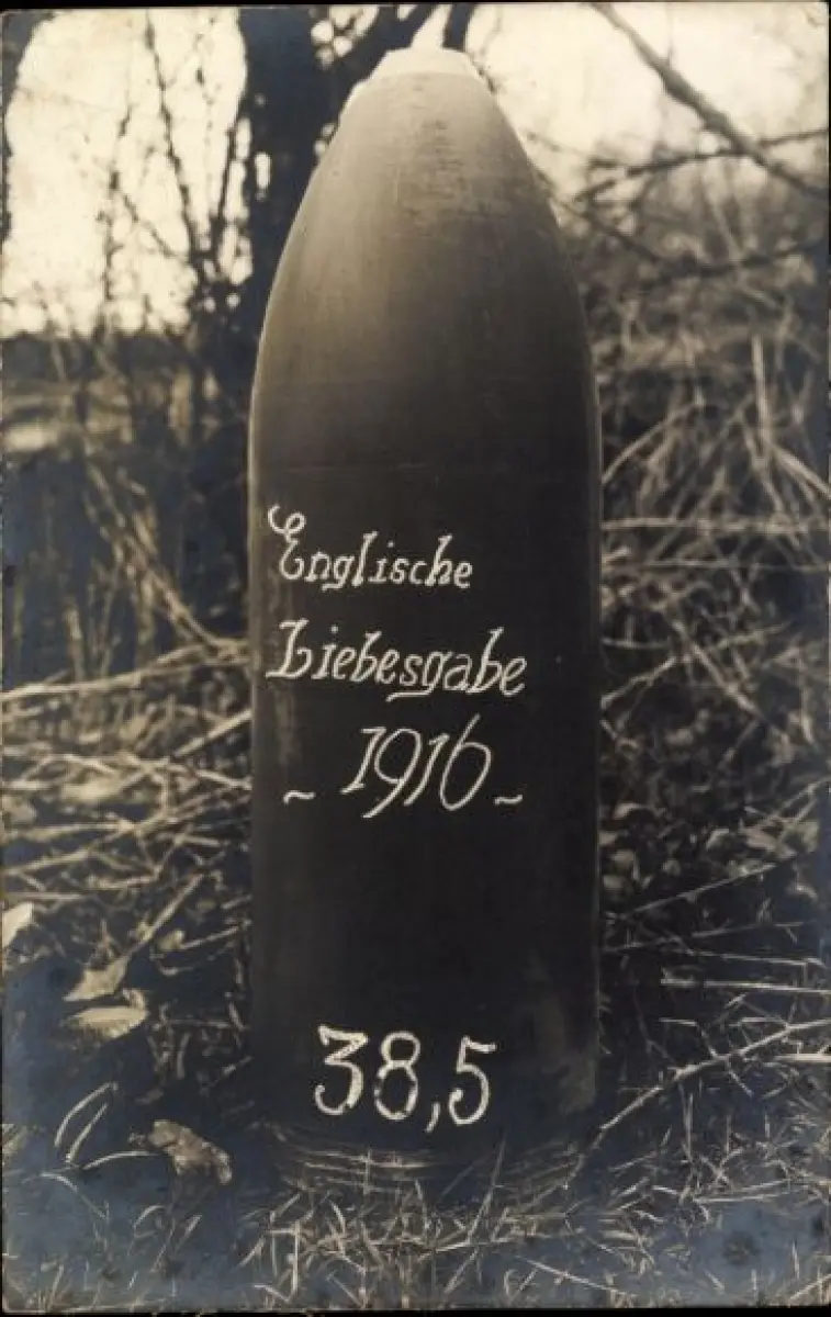 Ak Englische Liebesgabe 1916, Blindgänger, Kriegsbeute