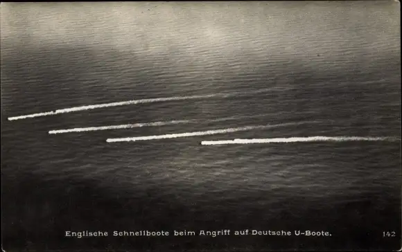 Ak Englische Schnellboote beim Angriff auf Deutsche U Boote