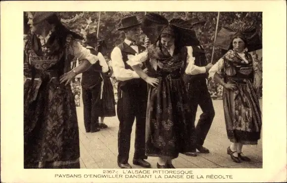 Ak Engwiller, Elsässer Tracht, Tanzpaar, Tanzende Menschen