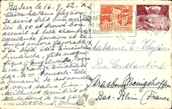 Zustand, siehe Scan, gelaufen, 1952 - ca 14 cm X 9 cm