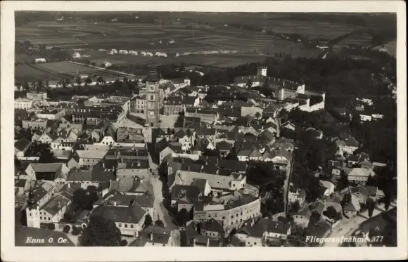 Ak Enns in Oberösterreich, Totalansicht der Ortschaft, Fliegeraufnahme