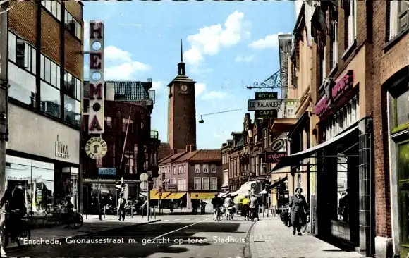 Ak Enschede Overijssel Niederlande, Gronausestraat mit Blick auf den Rathausturm