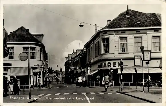 Ak Enschede Overijssel Niederlande, Kruispunt Oldenzaalsestraat, Langestraat