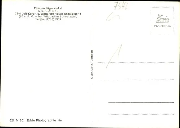 Ak Enzklösterle im Schwarzwald, Pension Jägerwinkel