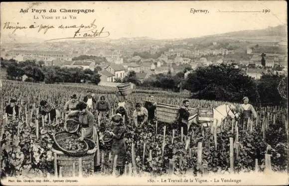 Ak Épernay Marne, Arbeit am Weinstock, Die Ernte