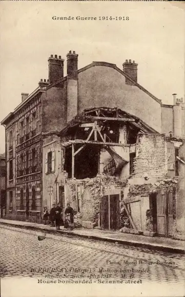 Ak Épernay Marne, Zerbombtes Haus, Rue de Sezanne