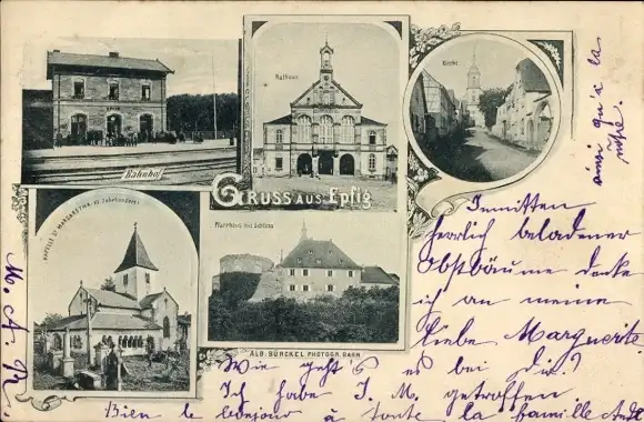 Ak Epfig Elsass Bas Rhin, Bahnhof, Gleisseite, Kirche, Rathaus