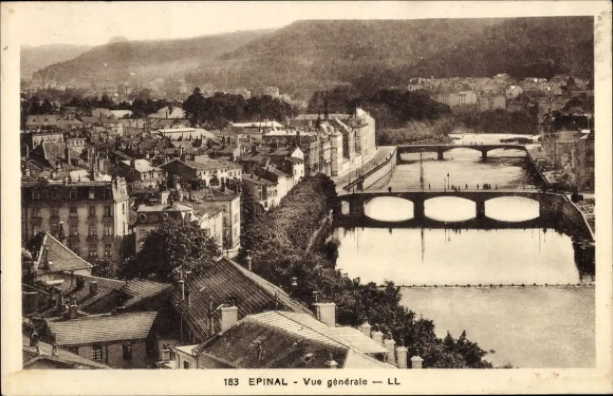 Ak Épinal Lothringen Vosges, Stadtansicht, Brücken, Fluss, Häuser
