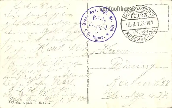 Zustand, siehe Scan, gelaufen, 1915 - ca 14 cm X 9 cm