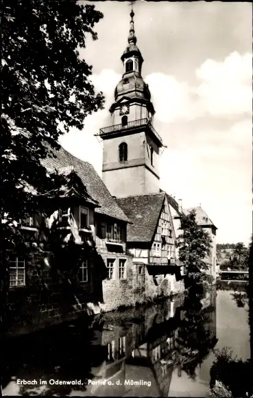 Ak Erbach im Odenwald Hessen, Partie an der Mümling, Kirche