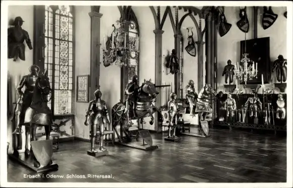 Ak Erbach im Odenwald Hessen, Schloss, Rittersaal, Rüstungen