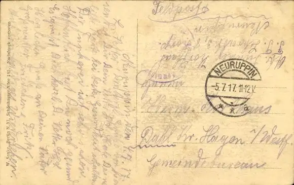 Zustand, siehe Scan, gelaufen, 1917 - ca 14 cm X 9 cm
