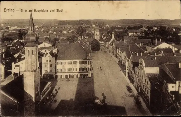 Ak Erding in Oberbayern, Blick auf Hauptplatz und Stadt