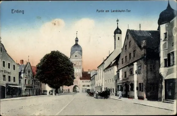 Ak Erding in Oberbayern, Landshuter Tor, Straßenansicht