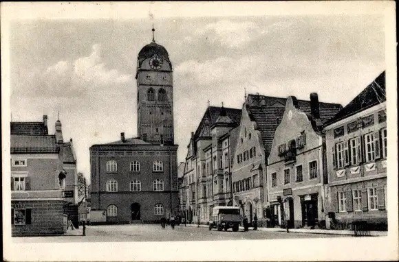Ak Erding in Oberbayern, Straßenpartie, Rathaus