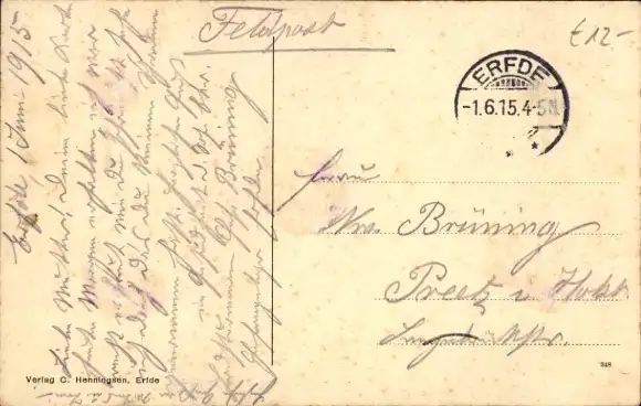Zustand, siehe Scan, gelaufen, 1915 - ca 14 cm X 9 cm
