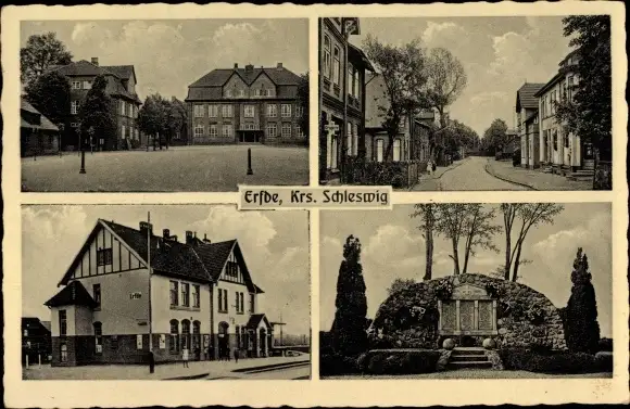 Ak Erfde in Schleswig Holstein, Platz, Straßenpartie, Bahnhof, Ehrenmal