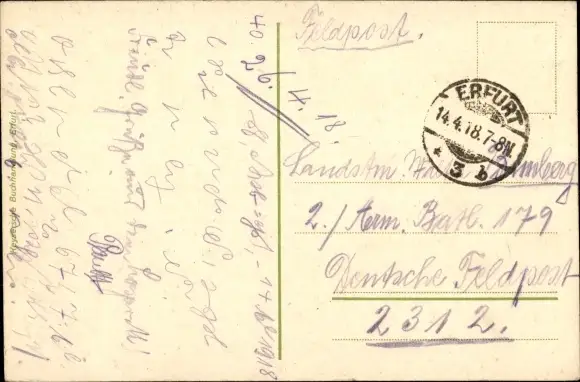 Zustand, siehe Scan, gelaufen, 1918 - ca 14 cm X 9 cm