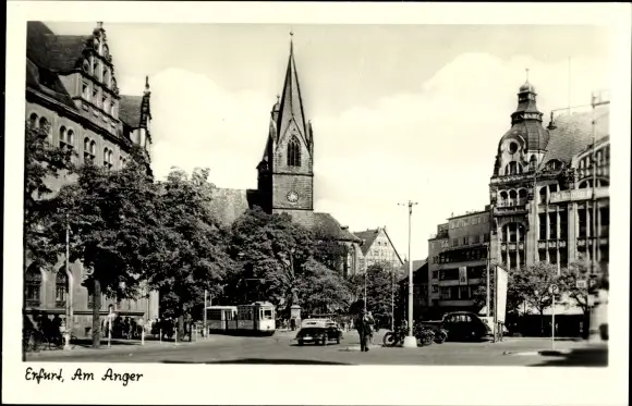 Ak Erfurt in Thüringen, Am Anger, Kirche, Straßenbahn