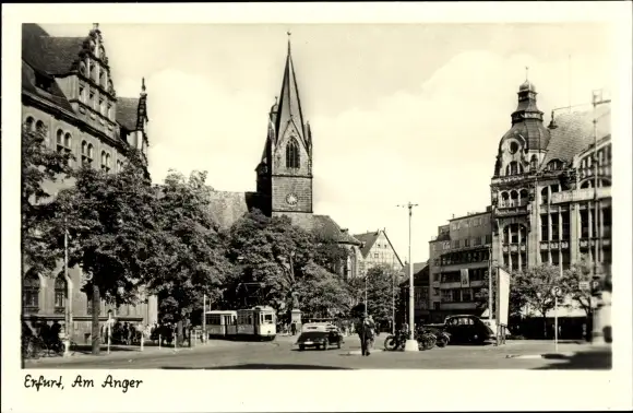 Ak Erfurt in Thüringen, Am Anger, Kirche, Straßenbahn