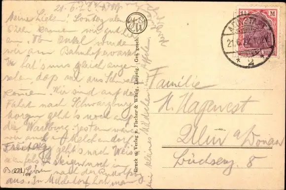 Zustand, siehe Scan, gelaufen, 1922 - ca 9 cm X 14 cm