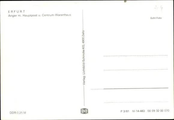 Ak Erfurt in Thüringen, Anger, Hauptpost, Centrum-Warenhaus