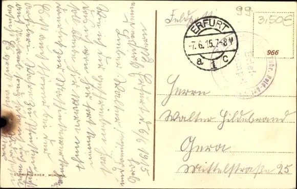 Zustand, siehe Scan, gelaufen, 1915 - ca 14 cm X 9 cm