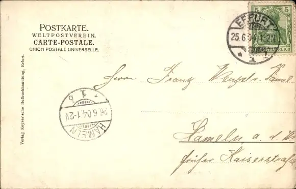 Zustand, siehe Scan, gelaufen, 1904 - ca 14 cm X 9 cm