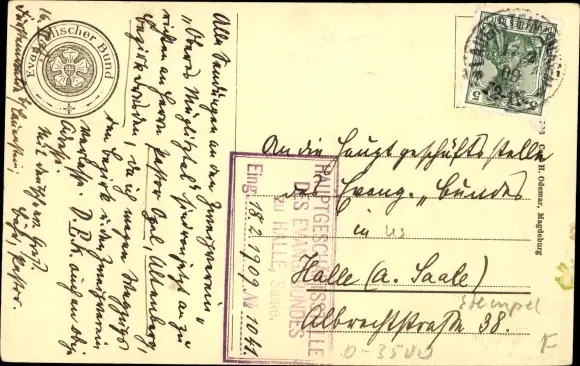 Zustand, siehe Scan, gelaufen, 1909 - ca 14 cm X 9 cm